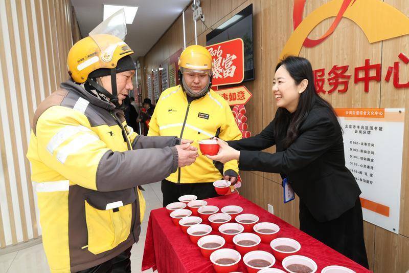 为切实关怀新就业群体,当天街道还设立“暖心粥站”,为快递小哥、外卖骑手等一线新就业群体免费提供热气腾腾的腊八粥。工作人员将熬制好的腊八粥细心分装,配上精心准备的福字与对联,递到每一位到来的新就业群体手中。“寒冬里喝上一碗热粥,还收到了新春祝福,感觉特别贴心,让我们感受到了街道的关怀。”外卖骑手王师傅说道。一碗碗甜糯的热粥驱散了冬日的寒凉,一张张红火的福字传递着新春的期许,让奔波忙碌的新就业群体真切感受到关怀与温暖,切实提升了他们的归属感与幸福感。